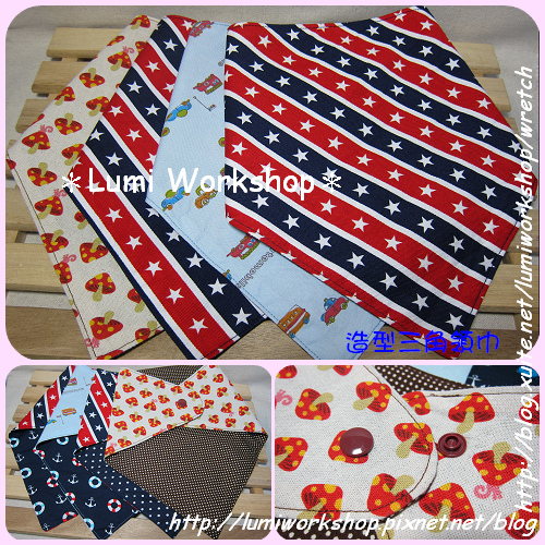 這幾條是要做給好友兒子的造型三角巾,稍微修改之前的版型,